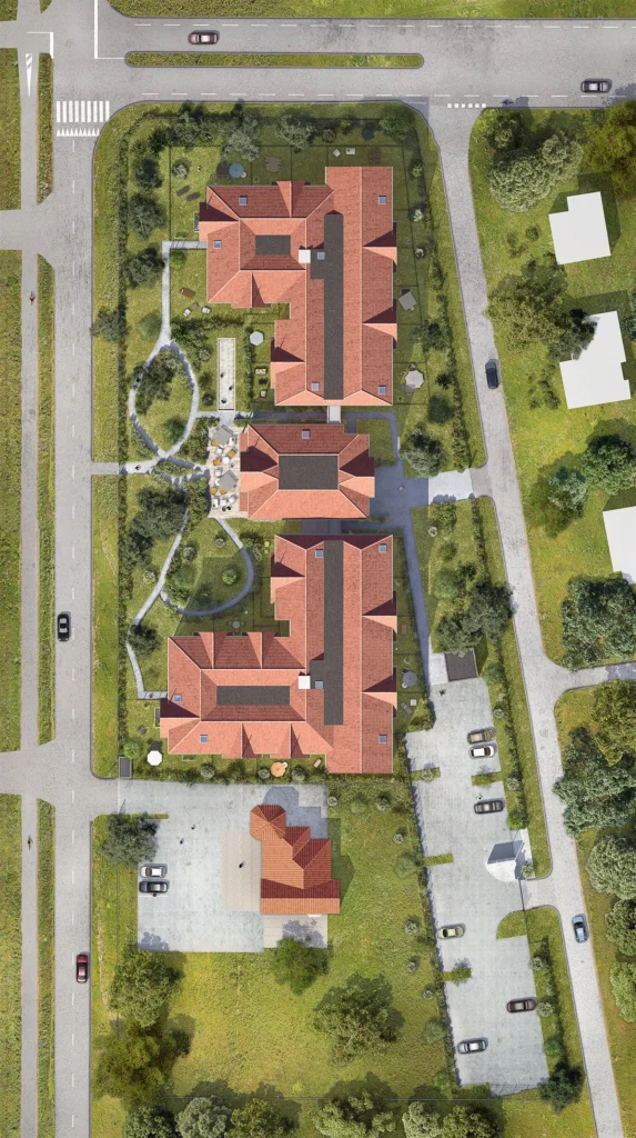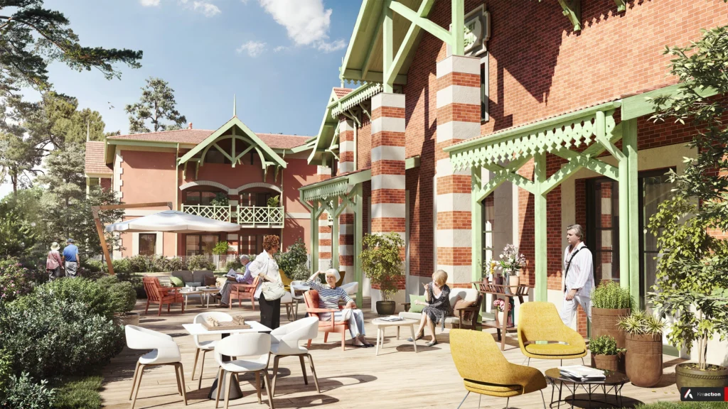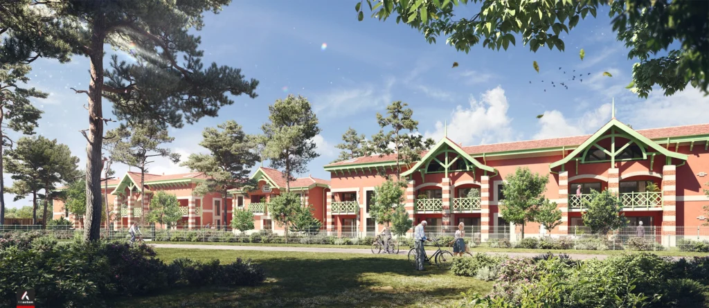 Reflet-Océan est un projet composé d’appartements T2 (82) et T3 (12), dédiés aux seniors. En puisant dans le passé et en se tournant vers l’avenir, nous avons développé une grammaire soulacaise. Le bâti se devait de respecter la vocation balnéaire et historique de la ville. Ici, il vient s’accoler à la villa Roseraie, vestige d’une époque qu’il est encore possible de ressusciter. C’est donc en développant ce vocabulaire du lieu que l’opération s’organise et se structure le long du boulevard, mais aussi au milieu d’une franche végétation, l’inscrivant logiquement dans la thématique locale de la ville-parc.